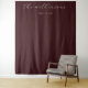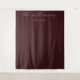 This elegant wedding backdrop features a minimalist design with a rich maroon background, creating a sophisticated and modern atmosphere. The layout includes centred cursive text for customisation, paired with a clean serif font for the date, ensuring a balanced and stylish composition. The subtle cream-coloured typography contrasts beautifully against the deep background, enhancing readability while maintaining an understated elegance. Perfect for formal celebrations, this design emphasizes simplicity and refinement, making it ideal for capturing memorable moments at your special event.
