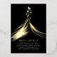 Discover an invitation that embodies elegance and luxury, perfect for your bridal shower. This stunning creation features authentic gold foil (with alternatives in silver and rose gold) gracefully set against a bold, minimalist, solid black backdrop. The highlight is the enchanting silhouette of a radiant bride adorned in a white and gold wedding dress, a vision that captivates both the eyes and the imagination. The inscription "Bridal Shower," along with the bride's name and surname, is meticulously crafted in the same exquisite foil, exuding sophistication and chic style. This invitation is not just a mere card; it's a testament to your impeccable taste, blending modern flair with timeless romance.