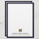 Elevate your professional correspondence with our Sophisticated Monogram Business Letterhead. This refined design features a brushed gold monogram emblem showcasing your company initial, complemented by your name, address, and contact information in classic navy typography. The white background, accented by a rich navy blue frame, exudes sophistication and attention to detail. Perfect for estate planners, attorneys, and advisors, this letterhead adds a touch of elegance to your communications, helping you make a memorable impression on clients and partners. Enhance your brand image and communication style with this premium letterhead design.