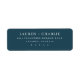 This elegant label features a clean, minimalistic design with centered text on a deep navy blue background. The crisp white serif font provides a sophisticated and formal look, perfect for special occasions like weddings or formal events. With ample negative space around the text, it offers a refined and uncluttered appearance that emphasizes clarity and simplicity. The customizable nature of this label allows you to personalize it effortlessly, making it ideal for creating memorable keepsakes or invitations.
