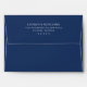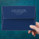 This wedding envelope features a minimalist design with centred text on a deep blue background, creating an elegant and sophisticated look. The layout is clean and uncluttered, utilising ample negative space to highlight the crisp, serif typography that adds a touch of formality. Customisable placeholders allow for personalisation with names, addresses, and locations, making it perfect for a modern wedding invitation suite. The high contrast between the white text and dark backdrop ensures readability while conveying a mood of understated elegance.