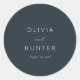 This elegant wedding sticker features a sophisticated navy blue background with a clean, centered layout. The design showcases a mix of serif and script typography, creating a refined contrast that highlights the names and date in a timeless manner. Its minimalistic approach emphasizes clarity and formality, making it perfect for commemorating a special occasion like a wedding or engagement. The classic color palette and balanced composition convey a sense of tradition and anticipation, ideal for those seeking a chic and understated celebration accessory.