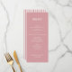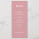 This elegant menu features a soft pink background with a clean, serif font that creates a sophisticated and refined look. The layout is organized into distinct sections for starters, salad, main course, and dessert, ensuring clarity and ease of reading. Each section highlights dietary options like vegetarian and gluten-free, making it both stylish and functional. Perfect for formal events, this minimalist design conveys an understated elegance ideal for weddings or upscale gatherings.
