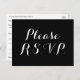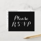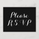 This luxurious R.S.V.P postcard design features the message "Please R.S.V.P." on the front. It also features a personalised RSVP form on the back, along with a personalised address that the completed RSVP cards would be mailed to. RSVP cards like this might be used to find out who will be attending a wedding reception, a wedding shower, a Christmas party, a graduation party, or some other celebration.