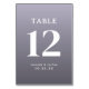 This elegant wedding table card features a minimalist design with a gradient purple background that transitions from light to dark. The layout is clean and modern, highlighting the bold white serif font used for "TABLE 12," which serves as the focal point. Below, smaller text provides customisable space for names and dates, maintaining a sophisticated and formal tone ideal for weddings. The overall style is understated yet refined, perfect for creating an atmosphere of calm sophistication at your special event.