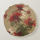 Sophisticated Red & Burgundy Floral Against Beige Round Cushion