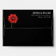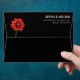 This elegant wedding envelope features a vibrant red flower with layered petals on the left side, set against a sleek black background. The clean, modern sans-serif typography provides customizable space for names and addresses, ensuring readability and sophistication. The minimalist design balances natural beauty with contemporary style, making it perfect for couples seeking a bold yet simple aesthetic for their special day.