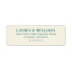 This return address label features a minimalist and sophisticated design with a soft cream background that highlights the elegant, serif typography. The deep teal text creates a striking contrast, ensuring clarity and readability. Perfect for formal events or announcements, this label exudes an understated luxury through its clean layout and restrained colour palette. Its classic aesthetic makes it versatile for various occasions, offering a timeless touch to any correspondence.