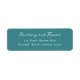This return address label features a clean, elegant design with a solid teal background and crisp white text. The layout is minimalistic, emphasizing clarity with ample negative space around the customizable name and address fields. A sophisticated script font adds an elegant touch to the names, while a smaller serif font provides a traditional feel for the address. Ideal for formal invitations or professional correspondence, this label conveys sophistication and simplicity through its contemporary style and calming color palette.