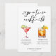 This sophisticated signature cocktails card features simple black typography above 2 of your favourite drinks and their ingredients for your coastal wedding bar. A chic Cosmopolitan and Whiskey Sour drawing add a fun flair to your bar menu. Complete with the couple's names and date for their reception.