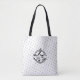 A tote bag for the musically inclined, featuring a treble clef and circular repeating music note pattern. Text reads "soprano." Let them know who hits the high notes.