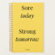 The quote "Sore today, strong tomorrow" means that the pain and discomfort you feel today—whether from exercise, hard work, or challenges—is a sign of growth and progress. The soreness represents effort, and by pushing through it, you become stronger, both physically and mentally, for the future.