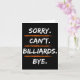 Sorry Cant Billiards Bye - Funny Excuse Saying Hob Card