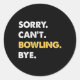 Sorry Can't Bowling Bye Funny Bowling Classic Round Sticker