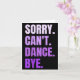 Sorry Can't Dance Bye Retro Funny Dancer Dancing D Card