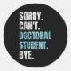 Sorry Can't Doctoral Student Bye Phd Graduation St Classic Round Sticker