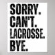 Sorry Can't Lacrosse Bye Poster