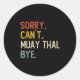 Sorry Can't Muay Thai Bye Shirts Funny Muay Thai L Classic Round Sticker