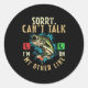 Sorry Can't Talk I'm On My Other Line Funny Fisher Classic Round Sticker