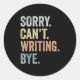 Sorry Can't Writing Bye Funny Writing Lovers Classic Round Sticker