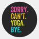 Sorry Can't Yoga Bye Teacher Student Funny Yoga Re Classic Round Sticker