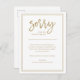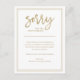 This simple and elegant announcement postcard is a way to apologise to clients or friends when you must cancel, reschedule, or postpone an event or wedding. Modern, faux gold look handwritten script adds a stylish touch, while the rectangular gold frame adds a formal and classic look. Use these announcement postcards for any cancellation, postponement, or rescheduling.
