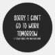 Sorry I Can't Go To Work Tomorrow Classic Round Sticker
