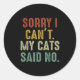 Sorry I Can't My Cats Said No Classic Round Sticker