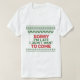 Sorry I'm Late I Didn't Want to Come in Ugly Holiday Sweater parody style with red and green uppercase lettering with simulated knitting embellishments of snowflakes and alternating faux knitting stitches.