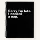 Grab this "Sorry I'm late. I needed a nap." funny saying tee shirt For anyone who considers sleep a priority, not a privilege. Show your sense of humour by wearing this basic cool text style. for Black and White Contemporary Art Lovers. I'm sure that it can spark many conversations and will help with breaking the ice. This funny awkward design is a great gift idea for employees, colleagues, coworkers, managers, supervisors, friends, or family, and also makes a great birthday, holiday gift, or Christmas present. Celebrate any occasion with a touch of personality and comfort! (YOU CAN CHANGE AND CUSTOMIZE THIS TEXT DESIGN OR ANY TEXT YOU WANT IN TEXTIFY STORE!).