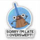 Sorry I'm Late I Overswept Funny Broom Pun features a cute broom running late and apologetic because he overslept. Perfect pun gift for family and friends who love cute broom puns.