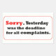 Yesterday was the deadline for all complaints