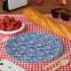 A mass of ivory-coloured carnations and other common cottage flowers strewn about, helter-skelter, against a medium sailor blue background, the pattern on this great premium quality paper plates was inspired by a favourite Victorian-era English Bone China Pattern. As perfect for tea-time in the Drawing Room as for a big ol' family breakfast in your country kitchen.
