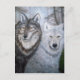 A grey wolf and his mate a white wolf sitting in the forest together. They have their thick winter coats. Very majestic.