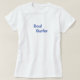 Soul Surfer white surfer tee with medium blue text. Hit the beach with your board in this unique Ken-Ray design classic beach shirt.