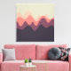 A design made up of irregular wave or hill like shapes arranged like a landscape with a progression of bands one behind or on top of another abstractly playing with colour and space. The design is also very reminiscent of sound and music with the wave like shapes and harmonising colours.