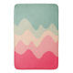 A design made up of irregular wave or hill like shapes arranged like a landscape with a progression of bands one behind or on top of another abstractly playing with colour and space. The design is also very reminiscent of sound and music with the wave like shapes and harmonising colours.