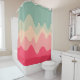 A design made up of irregular wave or hill like shapes arranged like a landscape with a progression of bands one behind or on top of another abstractly playing with colour and space. The design is also very reminiscent of sound and music with the wave like shapes and harmonising colours.