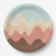 A design made up of irregular wave or hill like shapes arranged like a landscape with a progression of bands one behind or on top of another abstractly playing with colour and space. The design is also very reminiscent of sound and music with the wave like shapes and harmonising colours.