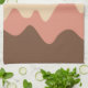 A design made up of irregular wave or hill like shapes arranged like a landscape with a progression of bands one behind or on top of another abstractly playing with colour and space. The design is also very reminiscent of sound and music with the wave like shapes and harmonising colours.
