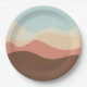 A design made up of irregular wave or hill like shapes arranged like a landscape with a progression of bands one behind or on top of another abstractly playing with colour and space. The design is also very reminiscent of sound and music with the wave like shapes and harmonising colours.