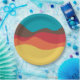 A design made up of irregular wave or hill like shapes arranged like a landscape with a progression of bands one behind or on top of another abstractly playing with colour and space. The design is also very reminiscent of sound and music with the wave like shapes and harmonising colours.