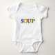 Fun Soup on this romper, embellished with whimsical chickens. Easy to personalise.