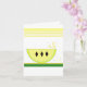 A great fruit design featuring a slice of lemon with seeds. Borders of yellow stripes at the top and green and yellow at the bottom. Customise as desired. Perfect for a thank you or just to say hello.