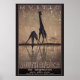 Two giraffes drink at a watering hole. This classic art poster advertising South Africa.