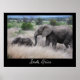 A baby and mother elephant cross the grass in the Pilanesburg National Park in South Africa