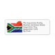 Stylish modern ADDRESS LABEL showing MAP & FLAG OF SOUTH AFRICA. There are customisable address details in light grey typography. Matching items available in the SOUTH AFRICA Collection.