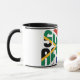 South Africa National Flag Patriotic Coffee Mug with the delightful inscription "South Africa" which is infused with the pattern and the colours from the national flag. Design is finished with the two double thin lines in complementing colours on the top and on the bottom of the cup. Colours inside the cup and on the cup handle are balanced with the rest of the cup colours. Line colours can be changed to any colour of your liking by pressing "Edit Design" button. Here is the fantastic companion for the daily cup of coffee. Charming design, lovely colours and the unique look makes it perfect gift for any occasion. © 2023 CountriesOfTheWorld