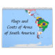 Any year calendar featuring the national flags and coats of arms of the 12 sovereign states in South America - Argentina, Bolivia, Brazil, Chile, Colombia, Ecuador, Guyana, Paraguay, Peru, Suriname, Uruguay and Venezuela.