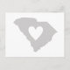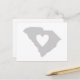 Keeping in touch with a South Carolinian you love has never been easier then with a South Carolina state shape filled in with solid grey background and a heart cutout postcard.